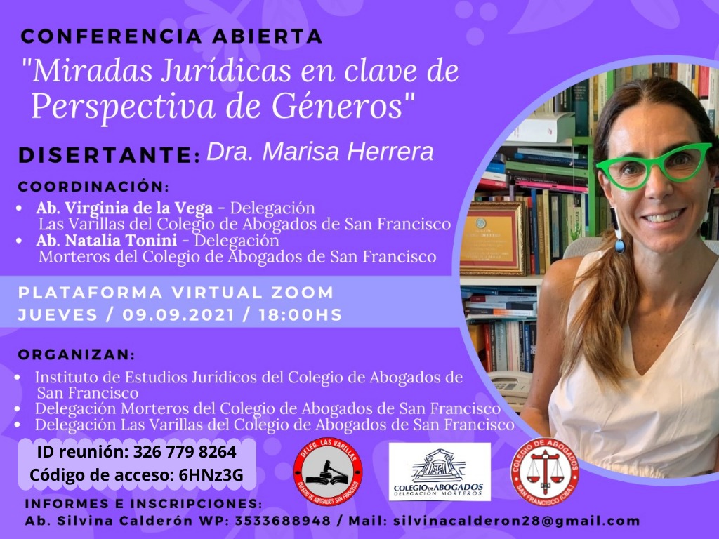 CONFERENCIA ABIERTA: "MIRADAS JURIDICAS EN CLAVE DE PERSPECTIVA DE GENEROS"