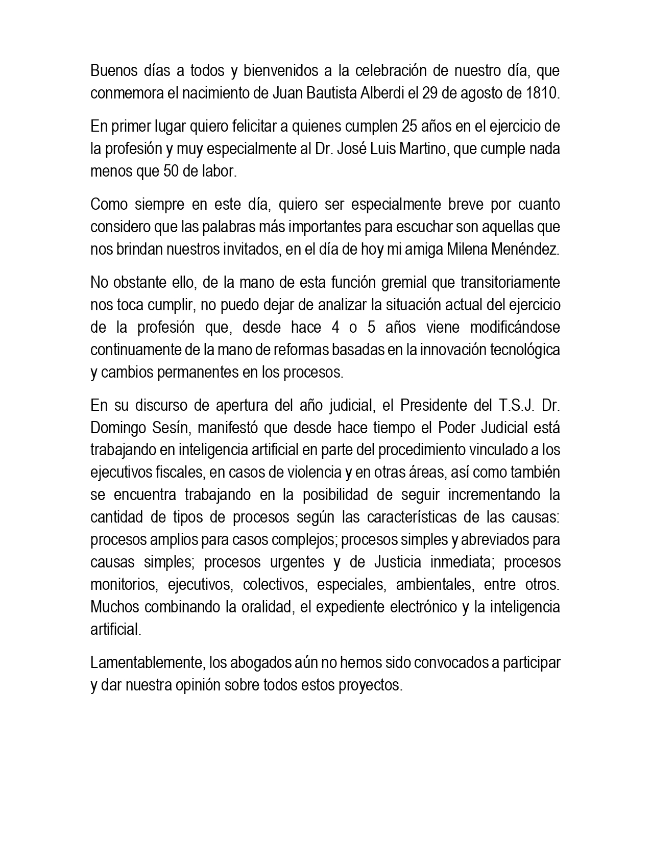 DIA DEL ABOGADO - PALABRAS DE BIENVENIDA PRESIDENTA DRA. MONICA GILLI: